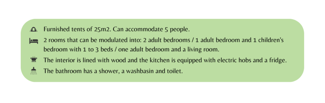 - 2 rooms that can be modulated into: 2 adult bedrooms / 1 adult bedroom and 1 children's bedroom with 1 to 3 beds / one adult bedroom and a living room.
