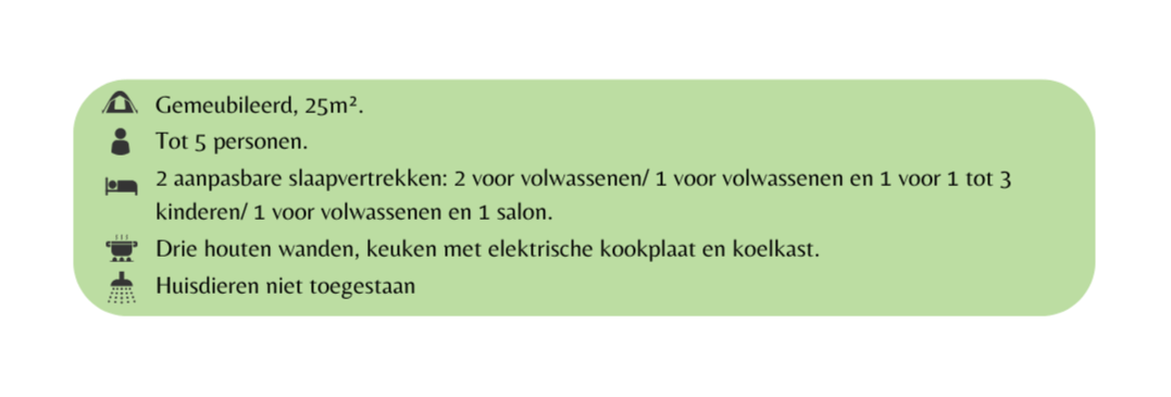 - 2 aanpasbare slaapvertrekken: 2 voor volwassenen/ 1 voor volwassenen en 1 voor 1 tot 3 kinderen/ 1 voor volwassenen en 1 salon.